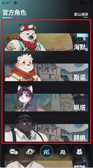2、登录系统进入主界面后,可浏览众多可供选择的聊天角色,从中找到自己心仪的目标。