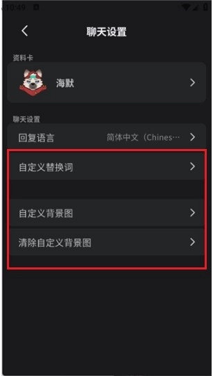4、和A角色进行文字对话,畅聊各种话题,体验互动的乐趣。5、之后还能通过右上角的菜单,设置语言、替换词以及背景图,打造专属于自己的聊天体验。