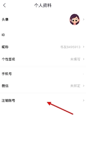 1、在个人资料界面内找到下方的“注销账号”功能。