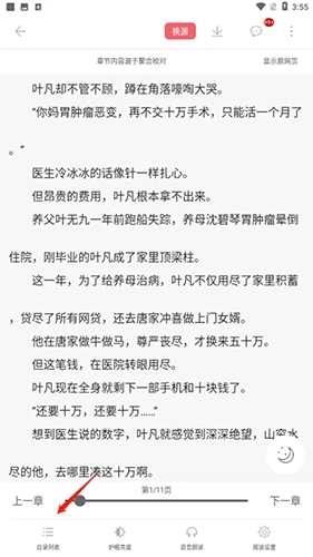 2、进入阅读页面后,轻点空白区域,接着选择“目录列表”选项就可以了。