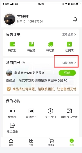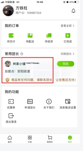 在我的界面就能看到团长的信息,团长名字旁边就有联系号码,也可以用这个号码添加微信联系哦!