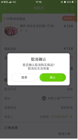 3、确认取消后本次购买取消操作就完成啦,若有相关问题可联系团长哦!