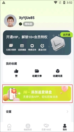 2、进入个人页面后,点击小编标注的位置,即可进入追爱键盘界面。