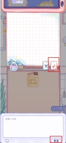 3、输入要留言的内容,点击发送按钮,接着点击√按钮;