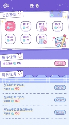 2、在任务页面中,可以通过签到、新手任务、每日任务就可以获得了。