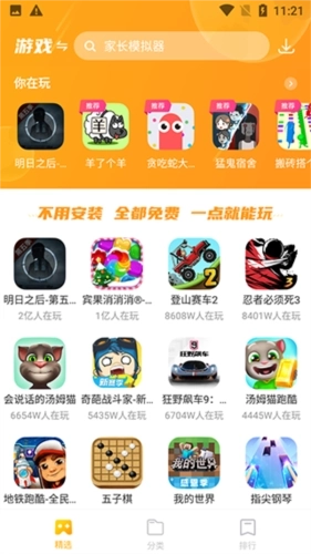 2、首页有精选的游戏,全都不用安装,一点就能免费玩。