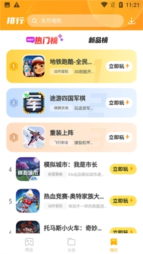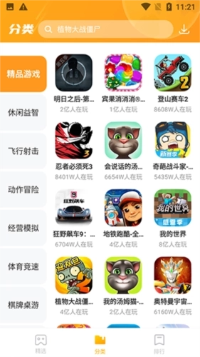 3、如果不知道玩什么游戏,也可以点击排行查看大家都在玩什么游戏。