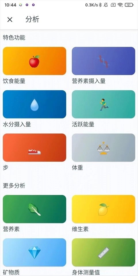 6、点击右上角的功能分析图标还可以查看更多特色功能以及营养分析;