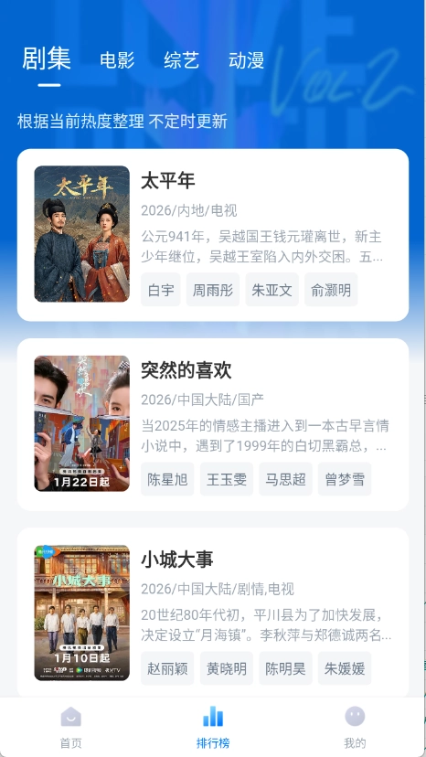影视资源更新及时,支持离线缓存,即便处于无网络环境也能顺畅追剧;全程打扰,可尽享纯粹的观影乐趣;此外还设有影视排行榜,能助力用户迅速定位当下热门的影视内容。