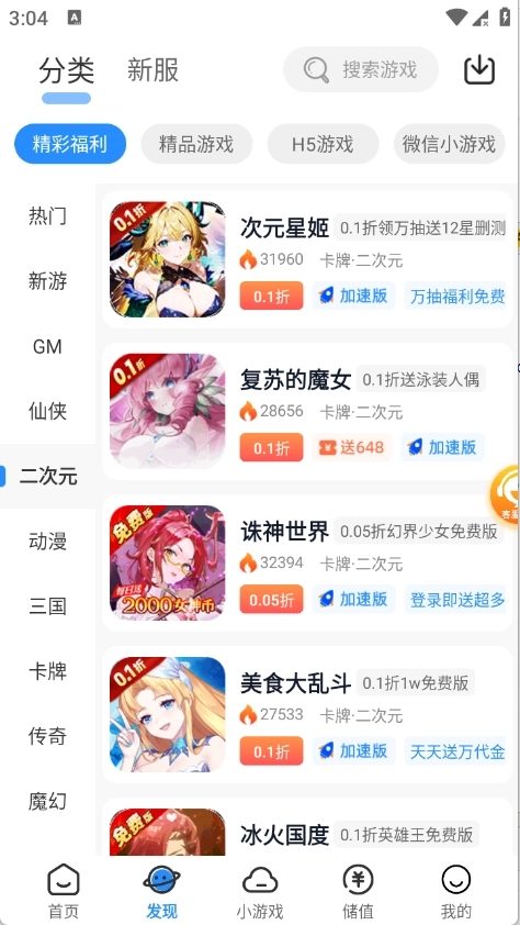 3、发现栏目将游戏进行了详细的归类。
