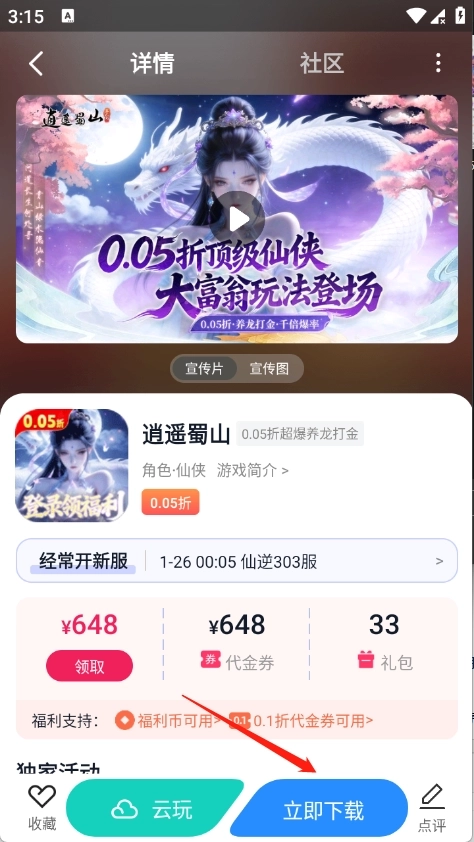 5、点开想玩的游戏资源进入详情页,点击立即。