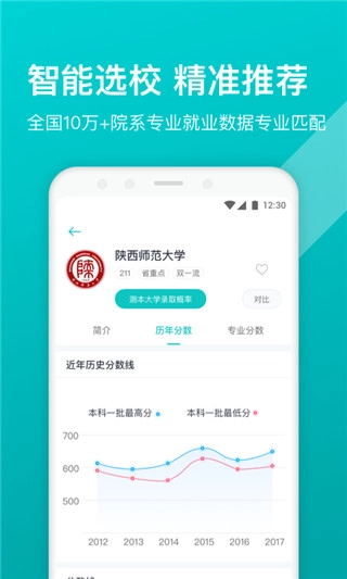 结合学院近五年的录取分数、排名及招生计划,再参考目标专业和高考成绩,运用6种核心算法,为你推荐录取概率最高的院校。