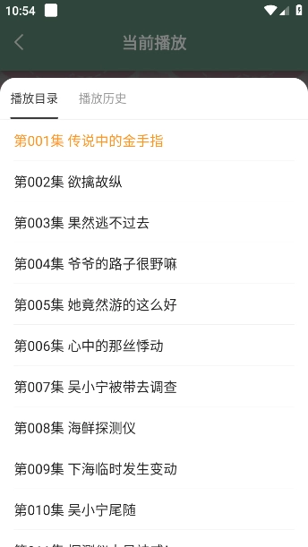 4、还可以选择章节集数以及播放历史。
