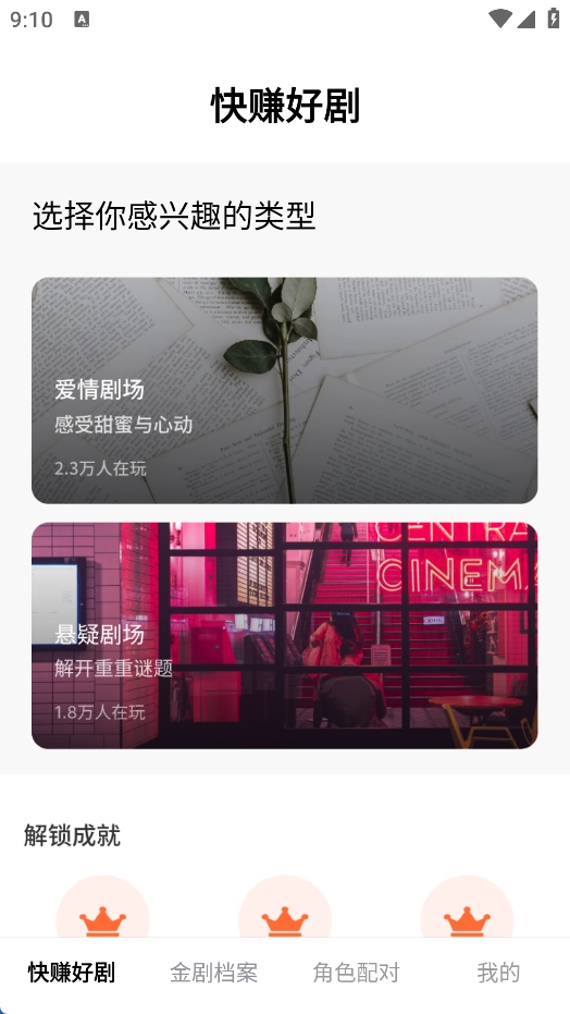 在首页能够挑选你钟爱的类型来解锁,主要涵盖爱情剧场与悬疑剧场。