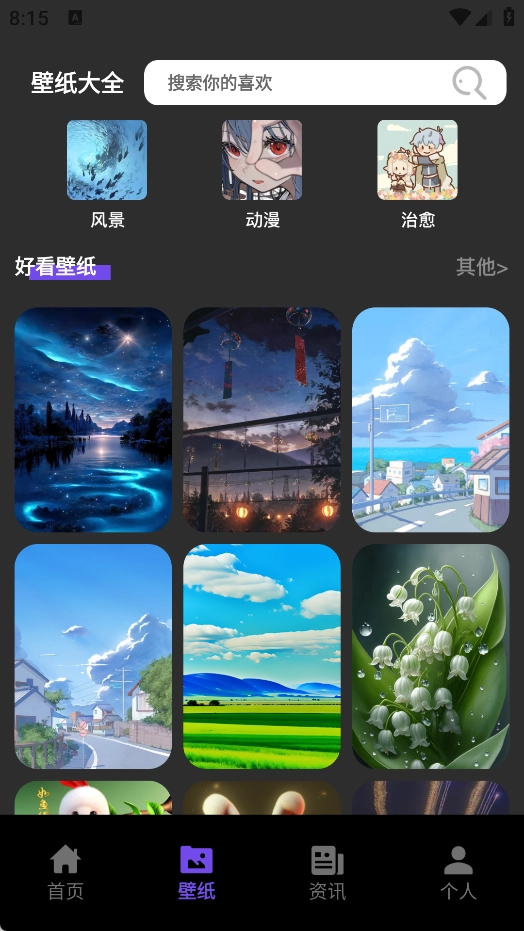 这个壁纸集合里收录了不少精美的壁纸,用户能够随时在线取用。