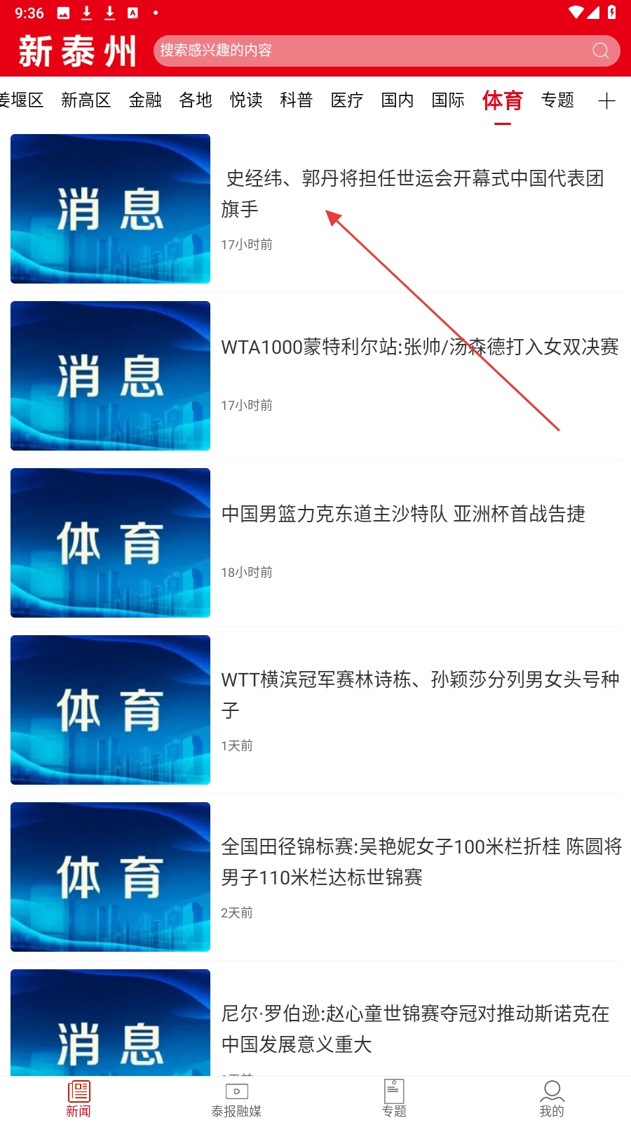 1. 开启【新泰州】,于体育板块挑选感兴趣的新闻,点击标题进入详情页面。