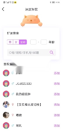 2模糊搜索可以按性别和年龄搜索出对应的注册用户