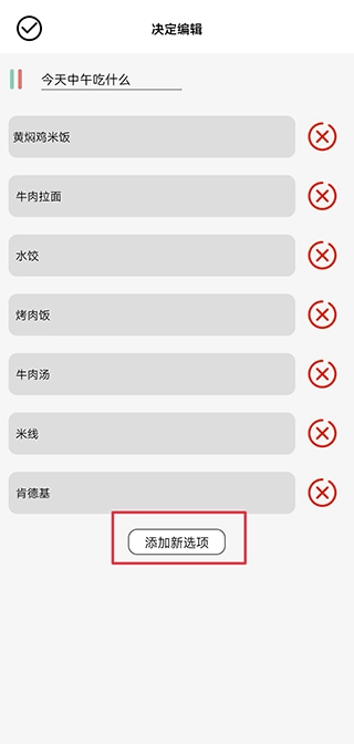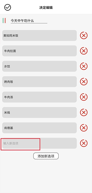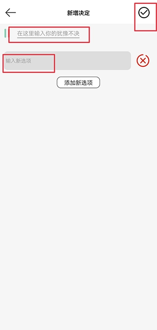 3、在上方填写犹豫不决的事项,在下方填写预备选项,完成后点击右上角的保存按钮即可。