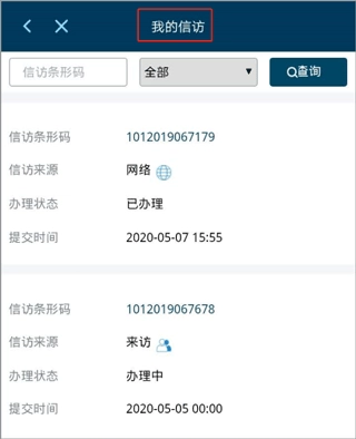 在“检察12309”界面的“我的”板块里,点击“我的信访”,就能查看经由来信、来访、来电以及网络提交的各类信访事项清单。