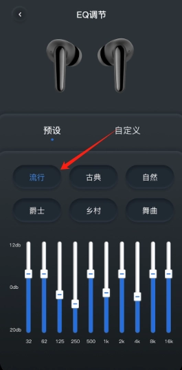 3、在预设里,你能够对耳机的播放模式进行调整,例如自然、流行、古典等。