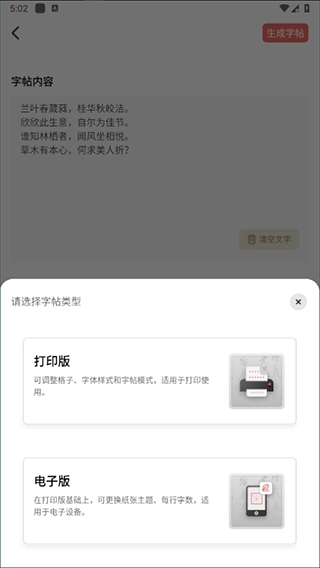 5、不仅如此,你还能够挑选心仪的字体,录入文字,接着生成字帖并打印出来。
