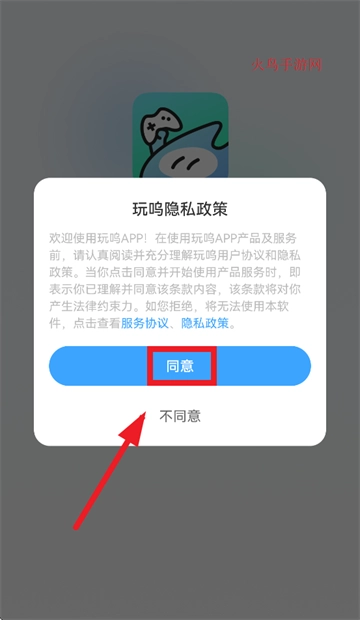 安装并打开玩呜,先点击同意玩呜隐私政策