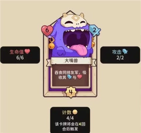 大嘴兽拥有无限吞噬敌人的能力,能有效提升生命与攻击属性,前期可以帮助你快速构建阵容。