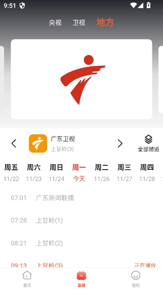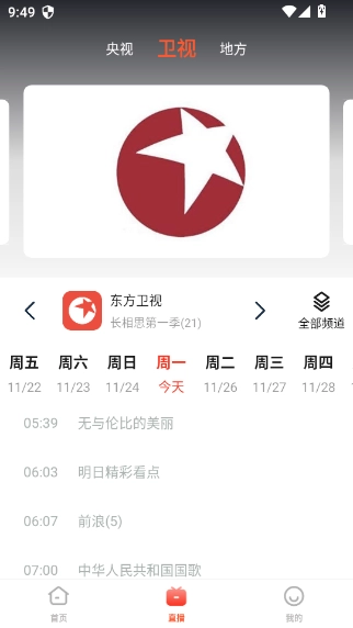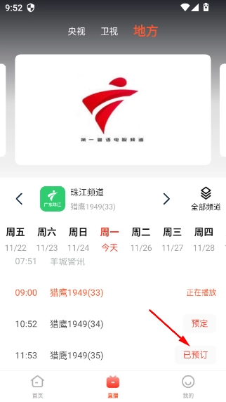 4、最后,在“我的”界面中,能够查看观看历史以及预定节目等内容。