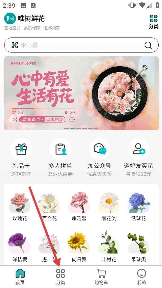 1、在首页点【分类】,进入分类页。