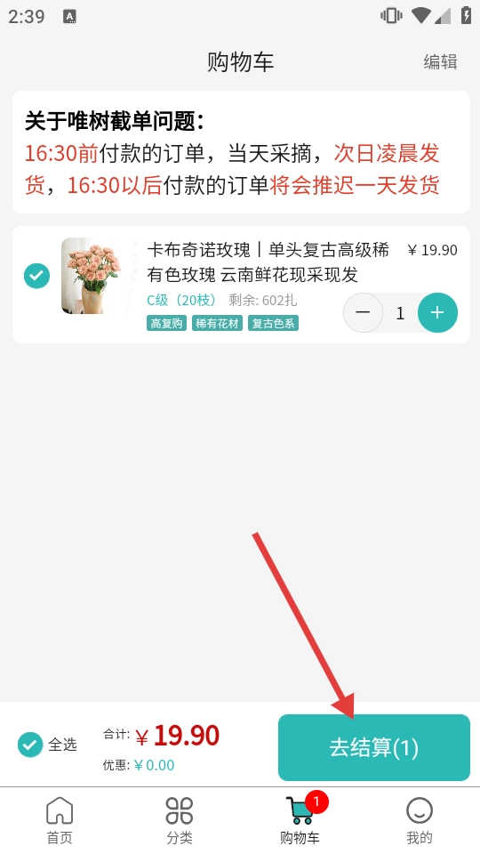4、于购物车页面,点击【去结算】,依照后续提示完成相关操作。