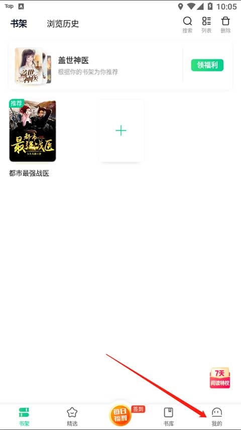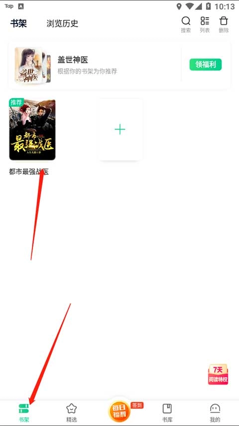 2. 点击下方的“书架”,从中找到我们要阅读的小说。