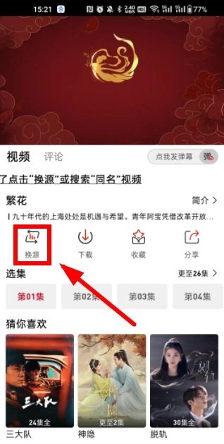 要是视频加载失败,或者播放过程中出现卡顿的情况,大家可以尝试点击下方的换源按钮来解决。
