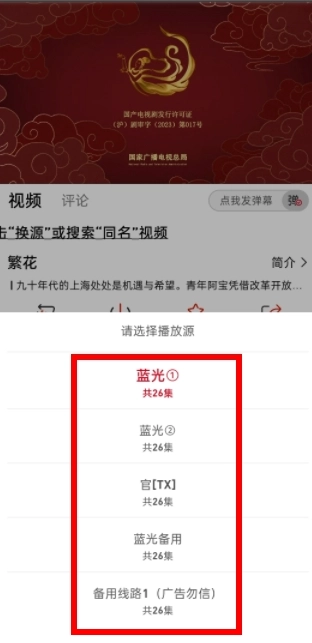 3、如下图所示,软件了多条播放源,如果视频看不了可以尝试此种办法。