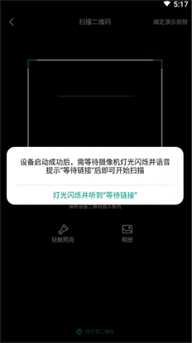 3、开启摄像机,听到语音提示,点击已听到等待连接。