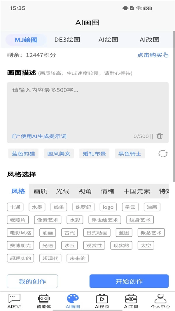 使用AI绘画的功能,帮助生成绘画内容。