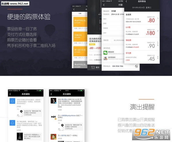 支持用户购买演出门票,用户可通过支付宝等支付平台完成付款交易。
