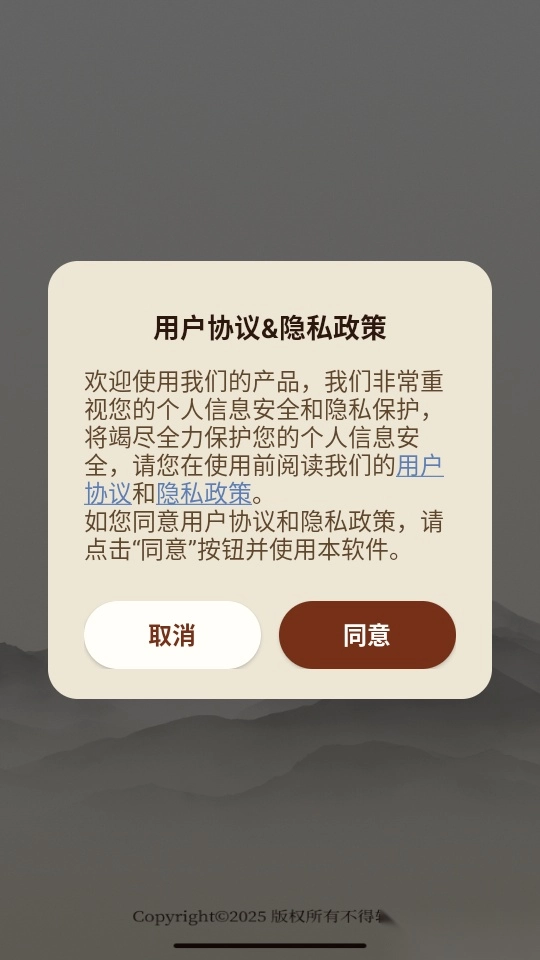 打开应用软件后,点击“同意”用户协议与隐私政策,即可进入软件使用。