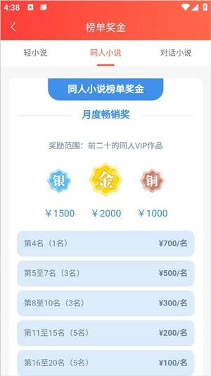 满足相关要求的同人小说签约作品,每个月能够得到300元的全勤奖励。