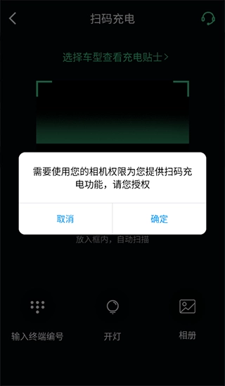 开启相机权限,扫描充电桩上的二维码;