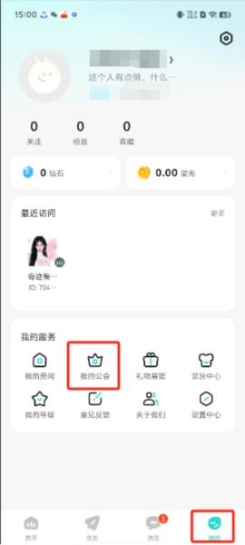 第二步:点击底部右下角的“我的”,然后在页面上找到“我的公会”选项。