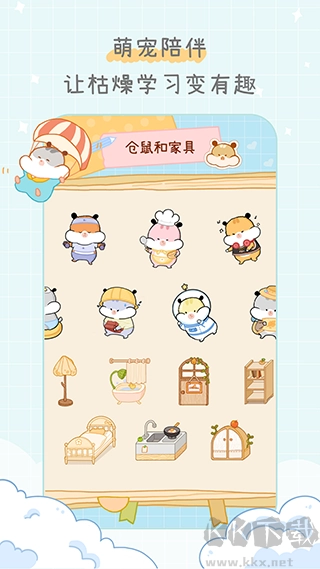 奶酪单词是一款融合学习与养成元素的趣味背单词应用,凭借软萌可爱的画面风格,营造出别具一格的学习氛围。每次完成单词记忆任务,就能解锁对应的仓鼠萌宠;学习过程中积累的奶酪,可用来投喂这些小家伙。此外,通过盲盒机抽取、每日签到等途径获取盲盒券,还能开出新的仓鼠伙伴。软件海量权威词库,从小学基础词汇到各类考试高频词全覆盖,针对一词多义设计了强化记忆方案,搭配原生例句帮助用户在语境中记词,同时提供拼写测试等多元练习模式。页面设计简洁,整体风格清新可爱,助力用户高效背单词,彻底摆脱枯燥学习,轻松快乐学英语。
