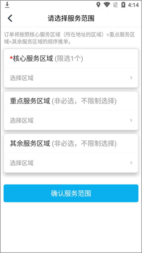 区域被划分为核心区域、重点服务区域和其余服务区域,可对其进行选择与修改。