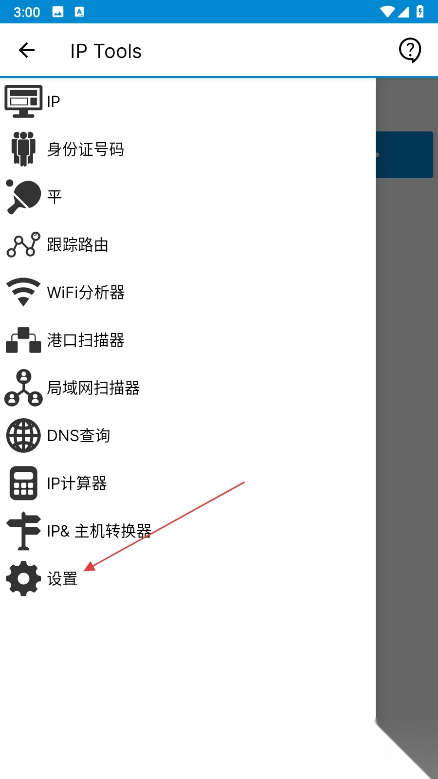 1、打开ip tools软件,点击左上角三条横线的菜单图标,展开功能列表。