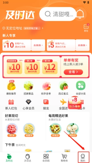 1、进入百果园,点击“我的。