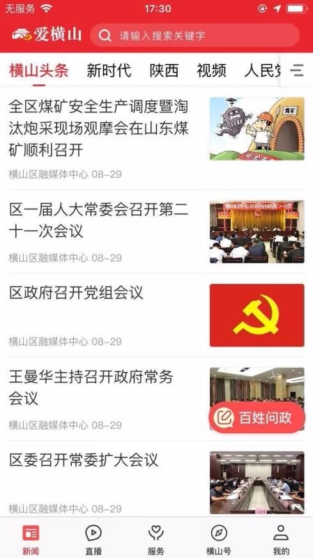 进入新闻板块后,可点击衡山头条、新时代、陕西等子板块浏览相关新闻内容。