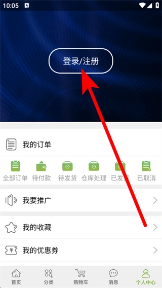 在首页页面,点击底部的个人中心,进入个人中心页面。