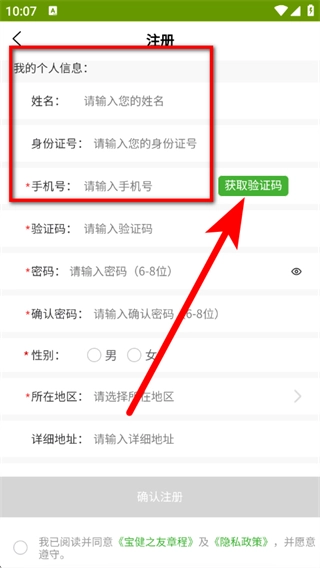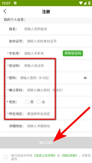在输入框中输入验证码,设置好密码,勾选相关协议后,点击确认注册按钮,即可完成注册流程。