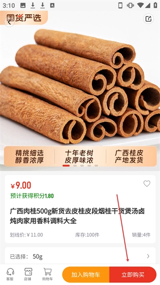在商品详情页面,点击【立即购买】按钮就能进入商品购买流程。