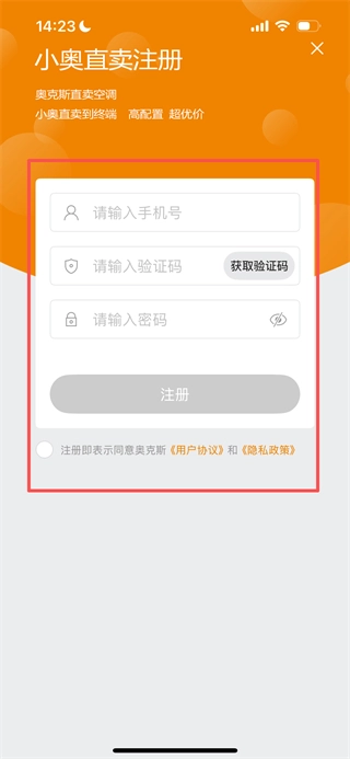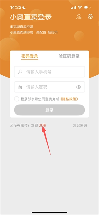 在登录页面选择立即注册,即可进入小奥直卖的注册界面。