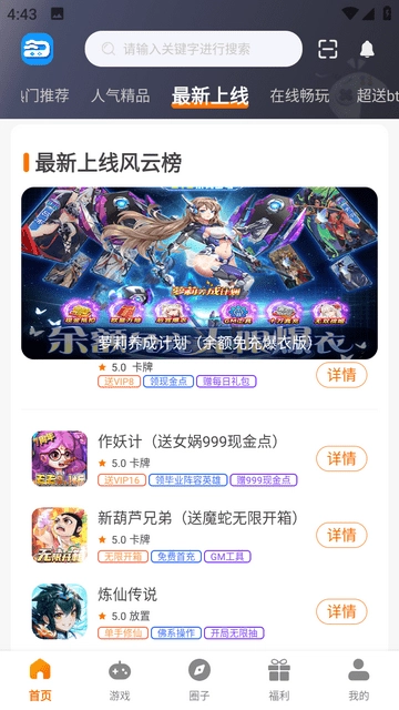 3. 游戏浏览:于首页处,能看到各类游戏推荐以及热门游戏排行榜,用户可依据自身喜好浏览游戏。